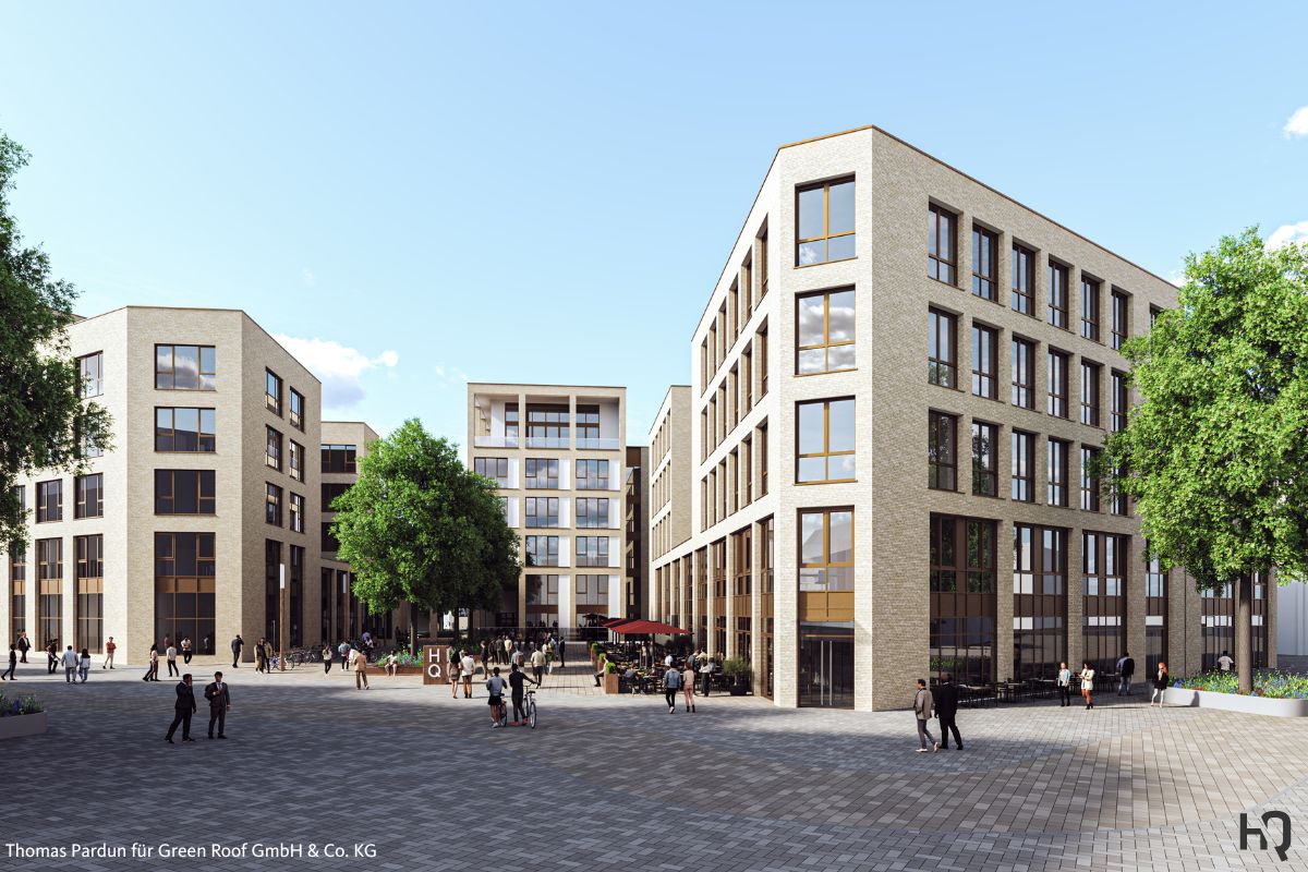 Die Bilder machen deutlich, was das Heinemann Quartier auszeichnet: Hohe Aufenthaltsqualität, grüne Freiräume und die direkte Anbindung an Innenstadt und Hauptbahnhof.