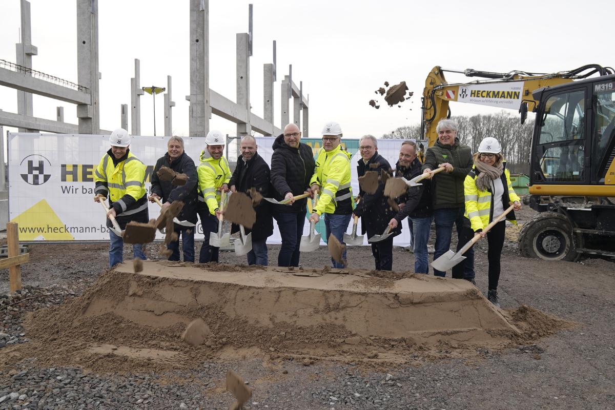 Bernhard Heckmann hat gemeinsam mit seinem Bauherren WM Fahrzeugteile den Spatenstich und damit den offiziellen Start der Bauarbeiten der neuen Betriebsstätte an der Lipperandstraße gefeiert. Die Bernhard Heckmann GmbH & Co. KG wurde mit der Bebauung der Gewerbefläche beauftragt. Die Anlage entsteht in unmittelbarer Nachbarschaft zum Heckmann Firmenstandort an der Römerstraße und umfasst eine moderne Verkaufsstätte mit einem Shop, einem mehrgeschossigem Lager, Büroräume sowie Schulungsflächen für Produkte des Unternehmens.